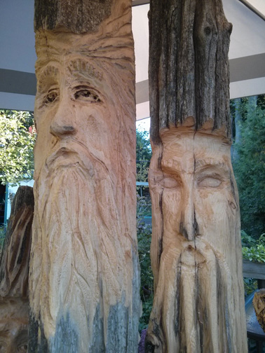 The two in the picture on the left were started in July. The ones on the right are from last week. The one with the knot hole in the mouth area is going to be smoking a pipe.